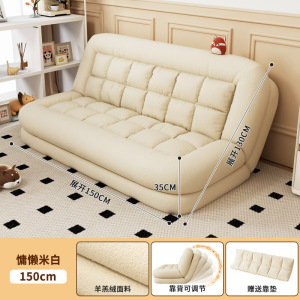 双人小沙发[展开150CM*130CM]亲肤羊羔绒面料-米白【赠送靠垫】