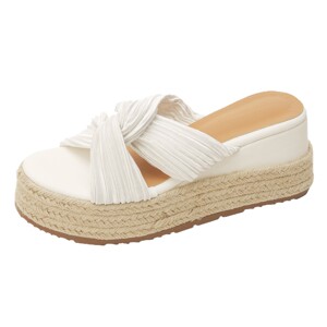 绸缎布面扭结厚底拖鞋女草编坡跟凉拖鞋夏季新款内增高圆头凉拖鞋