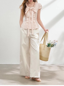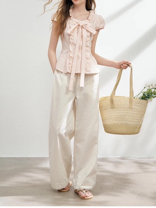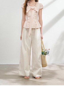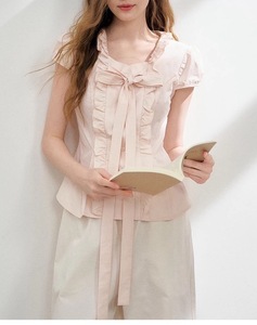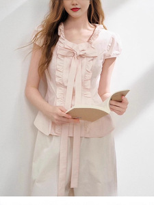 2025夏季新款褶皱上衣小众大蝴蝶结时尚气质短袖衬衫女