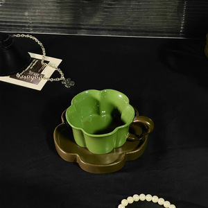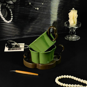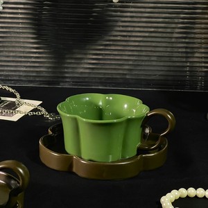 Sanq レトロスタイルウォールナット梅型コーヒーカップとソーサーセットレトログリーンアフタヌーンティーカップラテアートカップ