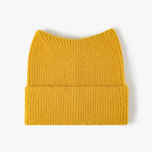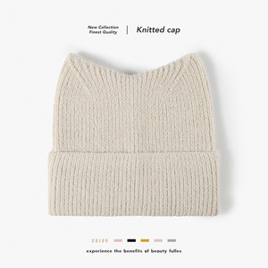 猫耳フェザーヤーンレディースライトボード暖かい厚みのあるニット帽子クロスボーダービーニー旅行耳保護ウール帽子