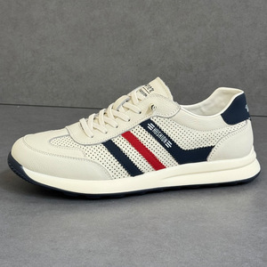 夏季板鞋男2025新款真皮透气镂空小白鞋青年百搭休闲复古德训鞋男