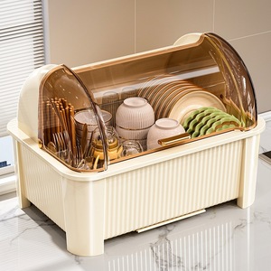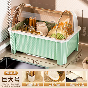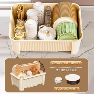 碗筷收纳盒放碗碟架厨房家用装盘多功能沥水置物架子防尘餐具碗柜