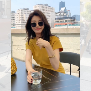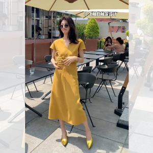 黄色【小个子连衣裙/裙子夏天连衣裙/连衣裙设计感小众//连衣裙女感夏季/2024年新款连衣裙/大码女