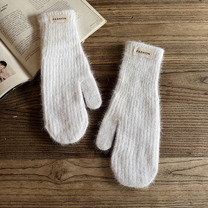 韩国东大门多巴胺ins兔毛手套女士冬季防寒保暖连指个性时尚包套