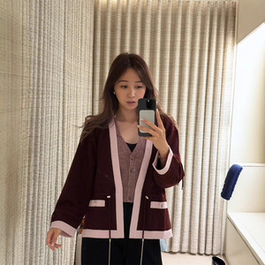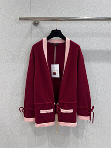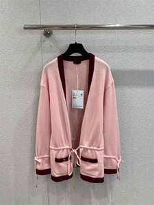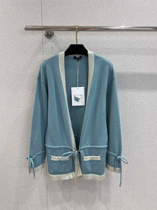2025夏季新款南油cha时尚气质名媛小香风大V领拼色抽绳针织开衫女