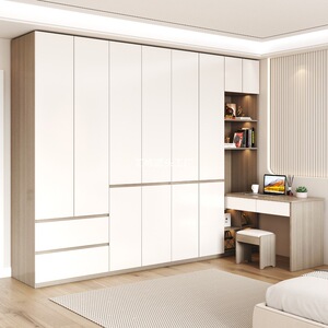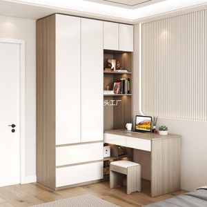 连体书桌衣柜一体儿童小户型衣橱组合学生实木多层板 转角 电脑桌