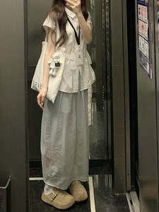 韩系气质polo领绑带白色短袖衬衫女夏季收腰显瘦设计简约百搭上衣