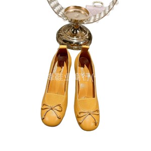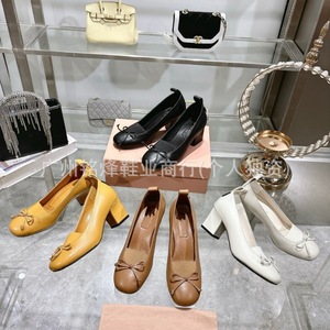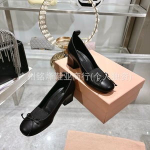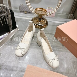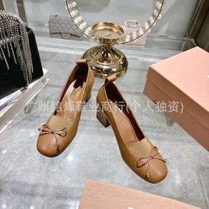 蝴蝶结单鞋女高版2025夏新款复古高跟粗跟浅口松紧一脚蹬玛丽珍鞋