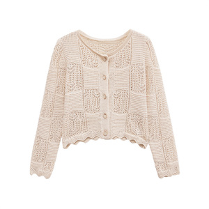 跨境外贸2025欧美风时尚女装气质百搭提花网眼针织外套 6771061