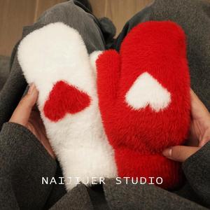 女士半指手套冬季韩版学生百搭保暖防寒加绒加厚半截写字骑行防风