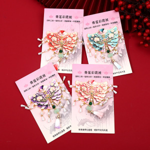 国风青莲彩霞披冰箱贴云肩造型诗意流苏挂饰