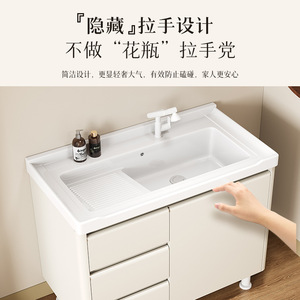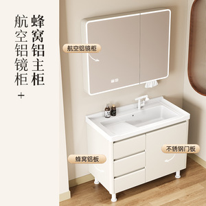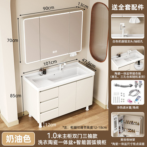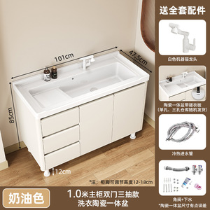 奶油蜂窝铝浴室柜卫生间陶瓷一体盆阳台洗衣盆带搓衣板落地柜组合