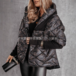 2025独立站毛衣拼接大翻领棉服女新款时尚流行机车炸街高级感外套