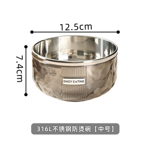 新しい波形ライト高級ボウル 316 ステンレス鋼ボウル家庭用大人の食事ボウル子供ボウル断熱抗火傷二層ボウル