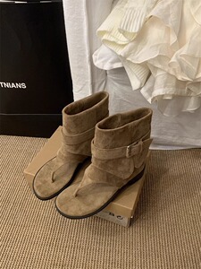 网红小众博主同款个性夹趾透气罗马鞋女休闲人字拖平底短筒靴凉靴