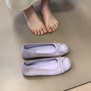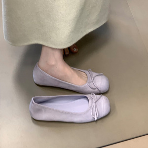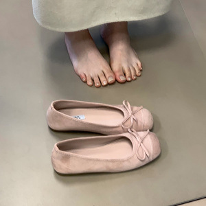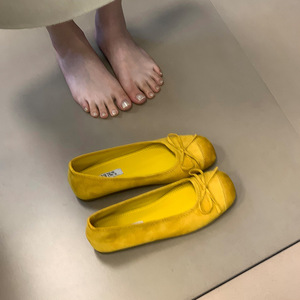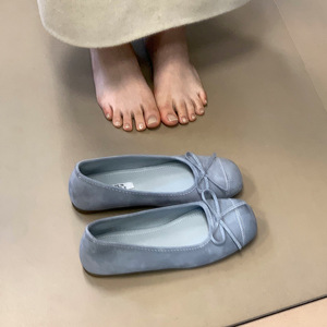 设计感小众方头浅口豆豆鞋2025春新款韩版平底蝴蝶结厚底内增单鞋