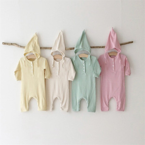 秋款新生儿衣服a类纯色坑条开扣长款男女童包屁衣宝宝连体衣爬服