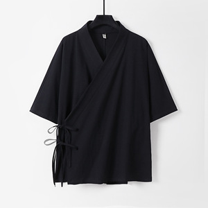 中国风复古棉麻七分袖男斜襟改良汉服古装中式民族风居士服禅服男