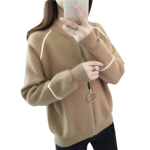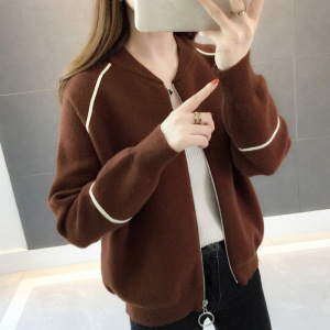 ニットニットカーディガンセーターレディース春秋新作ゆったり韓国風長袖ショート無地野球ユニフォーム