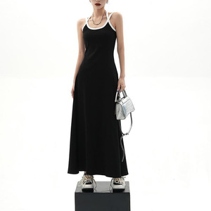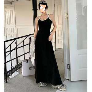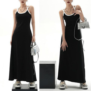 春秋スリムフィットアメリカンデザインウエスト痩身お腹カバーベストAラインサスペンダーロングスカート