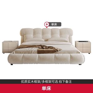 法式奶油风泡芙床现代简约软包床科技绒布艺床牛奶绒主卧大床...