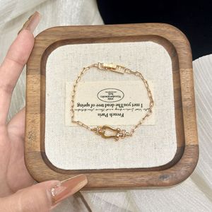 新款高品质香槟金马蹄扣手链轻奢高级感光面半钻U形镶钻手链手饰
