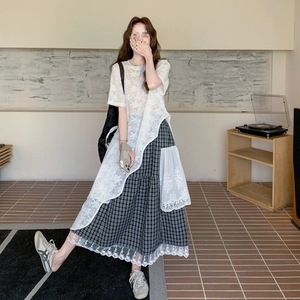 感穿搭套装裙子夏2025新款设计感蕾丝衫黑白格半身裙两件套潮