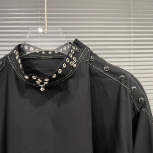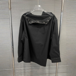 2025年秋季新款小众设计感开领金属装饰套头长袖衬衫上衣女