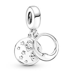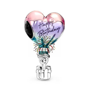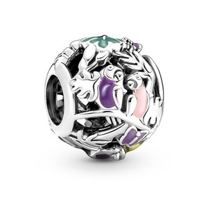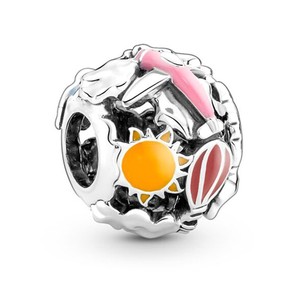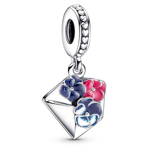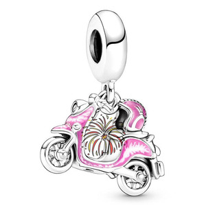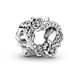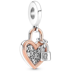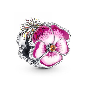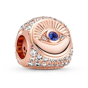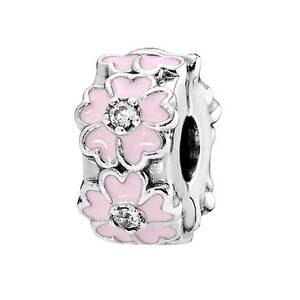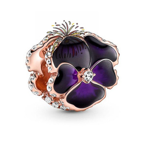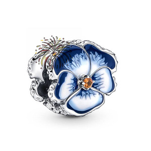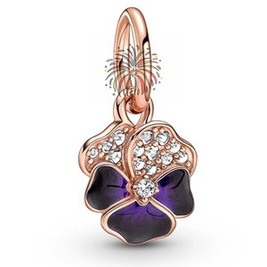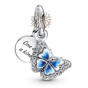潘家925纯银蓝色蝴蝶吊坠 diy母亲节玫瑰金镶钻爱心樱花串珠饰品