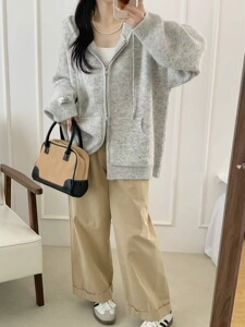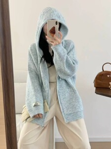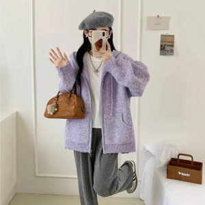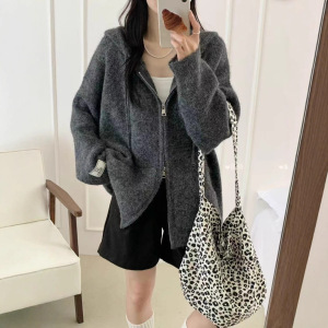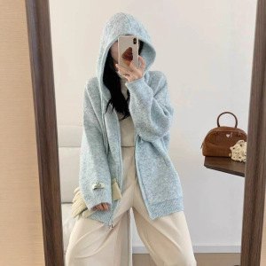 2025 韓国秋と冬の怠惰なスタイルのジッパーフード付きセーター女性のルーズ痩身花糸多用途ニットジャケット