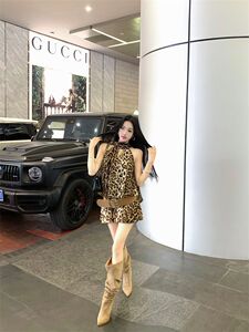 アメリカンホットガールヒョウ柄リボンホルターネックドレス女性の夏痩身ウエストノースリーブスカートシフォンAラインスカート