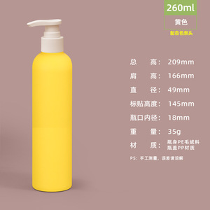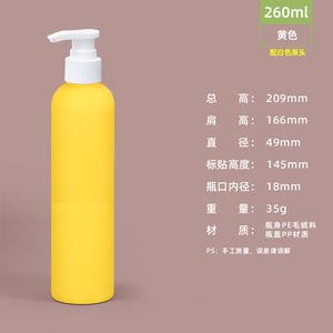 洗护瓶-260ml-黄色(扁头磨砂杏泵)