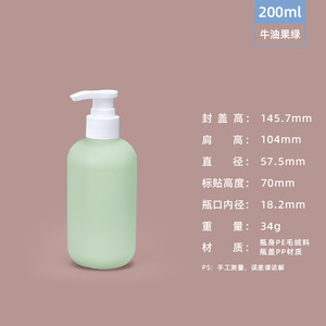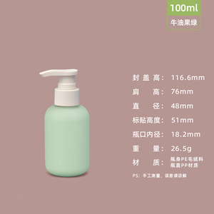 力宁PE毛绒软料牛油果绿分装瓶沐浴露乳液瓶旅行空压泵瓶洗护瓶