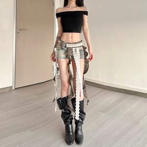 クロスボーダーヨーロッパとアメリカンスタイルの2025新しい夏の女性の服多用途リボンデザインウエストアクセサリーレトロチェック柄レースウエストバンド