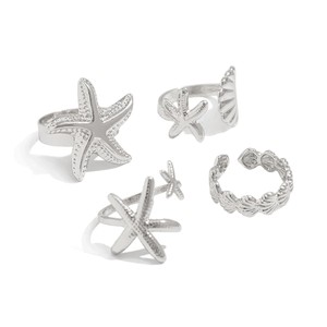 シェルリングセット卸売ヨーロッパとアメリカのオーシャンスタイルホリデージュエリー女性の調節可能なヒトデオープンジョイントリング