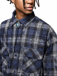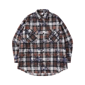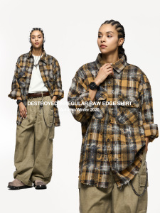 JIE ZHAN MEN'S | 破壊不規則な生端シャツ 2025 秋の新アメリカンストリートチェック柄メンズジャケット