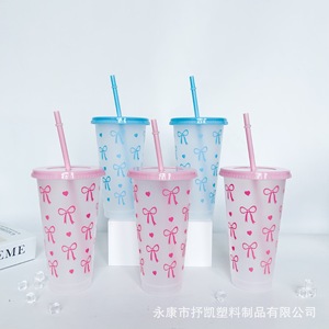 夏季爆款pp材质便携透明蝴蝶结爱心塑料吸管杯710ml大容量可logo
