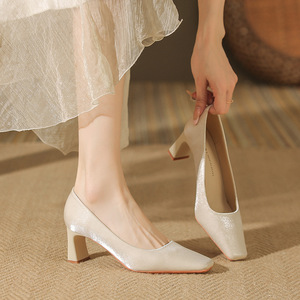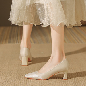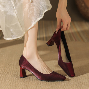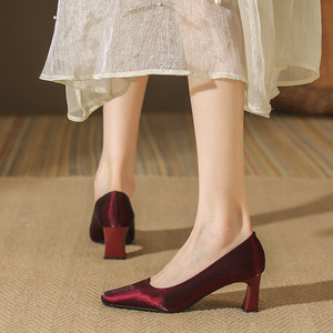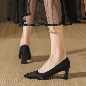 7607法式复古方头粗跟单鞋女春秋新款高跟鞋工作通勤百搭单鞋女