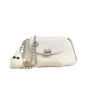 工厂直发直播爆款2025款褶皱云朵包迷你单肩斜挎包女链条包送挂件