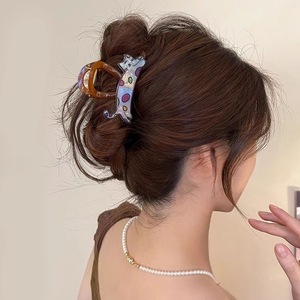 萌趣可爱狗狗猫咪亚克力抓夹女新款高级感发夹后脑勺甜美鲨鱼夹女