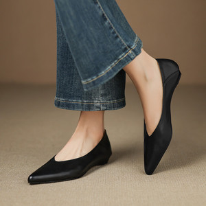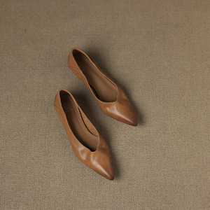 质感牛皮复古浅口单鞋女鞋2025秋季新款尖头不掉跟通勤平底小皮鞋