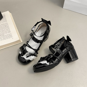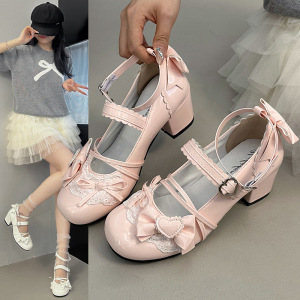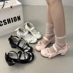 小皮鞋蝴蝶结可爱玛丽珍鞋2025新款萝莉女甜美蕾丝边粗跟扣带皮鞋