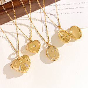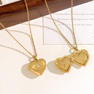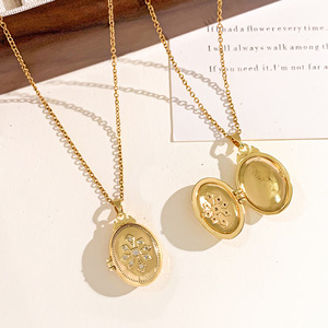 项链跨境新款热销八芒星项链小众简约设计感可打开相片夹项链配饰