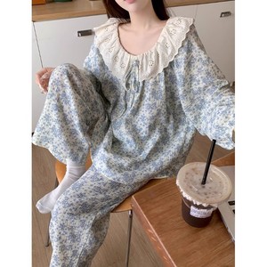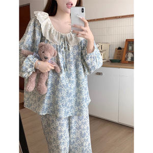 春と秋の女性用フレンチレトロ花柄パジャマ、長袖、インターネットセレブスタイルのホーム服、高級感、屋外で着用可能、クロスボーダー卸売