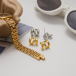 Jieding クロスボーダー 14K ゴールドステンレス鋼三層中空イヤリングライト高級ハイエンドイヤリングヨーロッパとアメリカのチタン鋼ジュエリー女性用