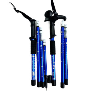 衝撃吸収性の高強度アルミニウム合金登山ポール、4セクション湾曲ハンドル、ストレートハンドル、伸縮式杖、卸売在庫、フレッシュベルベット