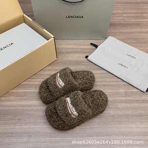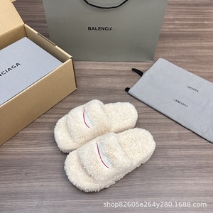 パリファーフリップフロップ女性用アウターウェア 2023 ラムウール厚底ビーチサンダルカジュアルホームノンスリップパリファーフリップフロップ