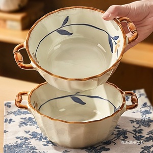 新しい釉下色の双耳スープボウル新しい中国風の家庭用セラミック大型スープボウル 10inch 大型インスタントラーメンボウル Dayue シリーズ
