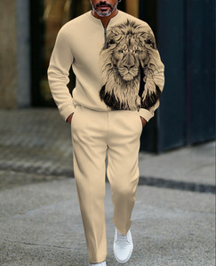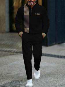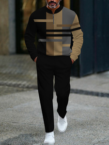 2025跨境爆款欧美男士两件套3d数码半拉链休闲百搭运动服秋冬套装